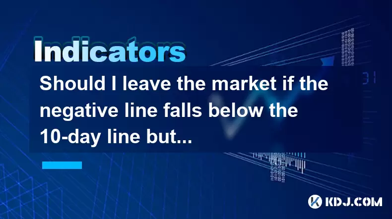 Should I leave the market if the negative line falls below the 10-day line but the MACD still has a golden cross?