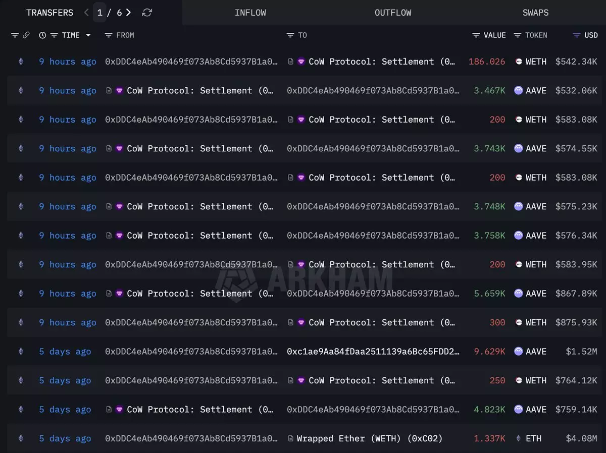 Whale 0xDDC4 spent 1,086 $ETH($3.13M) to buy 20,375 $AAVE again 9 hours ago. Since Dec 3, 2024, the whale has bought 59,588 $AAVE($13.47M) at $226 avg, and is currently sitting on an unrealized loss of ~$4.3M. https://intel.arkm.com/explorer/address/0xDDC4eAb490469f073Ab8Cd5937B1a0f585687931…