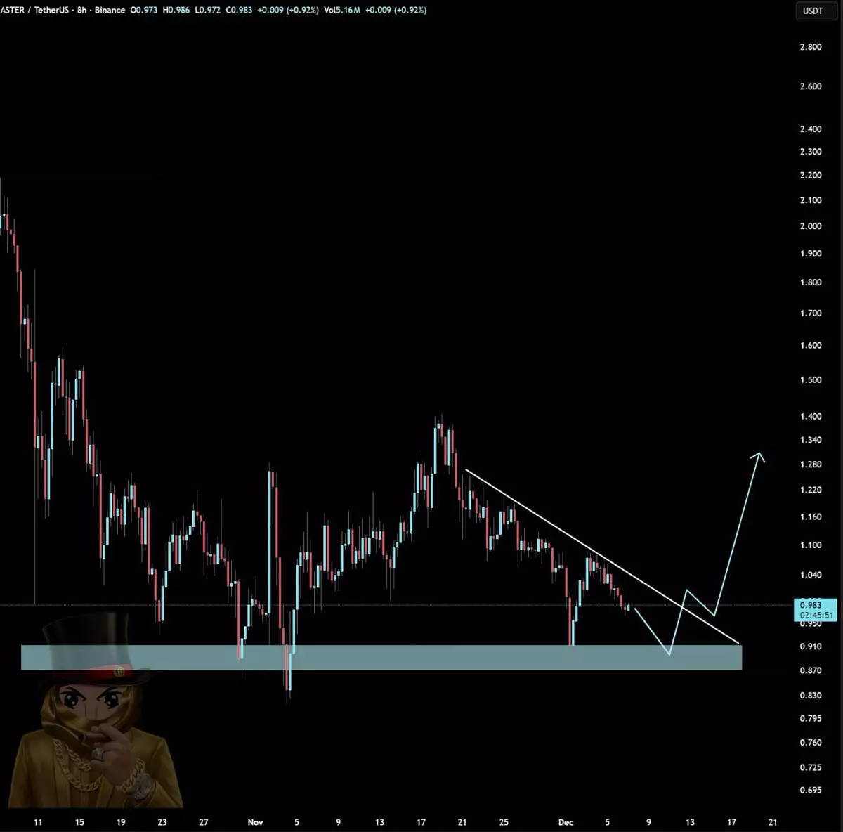 It’s getting interesting for $ASTER! Price is back at a major support zone that has held strong since October. Every dip into this area has been bought up almost immediately, and if the pattern repeats, a move back towards the $1.20-$1.30 region wouldn’t be surprising at all.