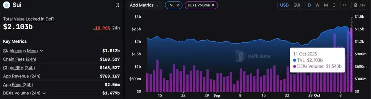 $SUI on chain data paints a mixed but worrying picture Its TVL dropped nearly 19% now sitting at $2.1B showing clear investor outflows and shrinking confidence in the network Yet, DEX volume hit a record $1.54B which looks less like growth and more like panic driven selling -