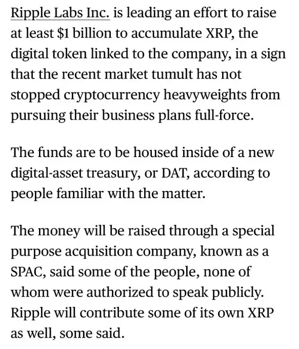 Bloomberg Reporting Ripple Labs seen leading $1 billion fundraise for $XRP stockpile. Please confirm (DYOR) Source 1 https://google.com/url?q=https://www.bloomberg.com/news/articles/2025-10-17/ripple-labs-said-to-lead-1-billion-fundraise-for-xrp-hoard&sa=U&sqi=2&ved=2ahUKEwj-8KXVlKqQAxUIgVYBHSX2BlYQFnoECCMQAQ&usg=AOvVaw0rL8mVBoK2vKNaGBflh6JD… Source 2 https://google.com/url?q=https://m.investing.com/news/cryptocurrency-news/ripple-labs-seen-leading-1-bln-fundraise-for-xrp-stockpile-bloomberg-4293618%3FampMode%3D1&sa=U&sqi=2&ved=2ahUKEwj-8KXVlKqQAxUIgVYBHSX2BlYQvOMEKAB6BAgVEAE&usg=AOvVaw2DOwrYPMfCGo87tVohoQPf… -
