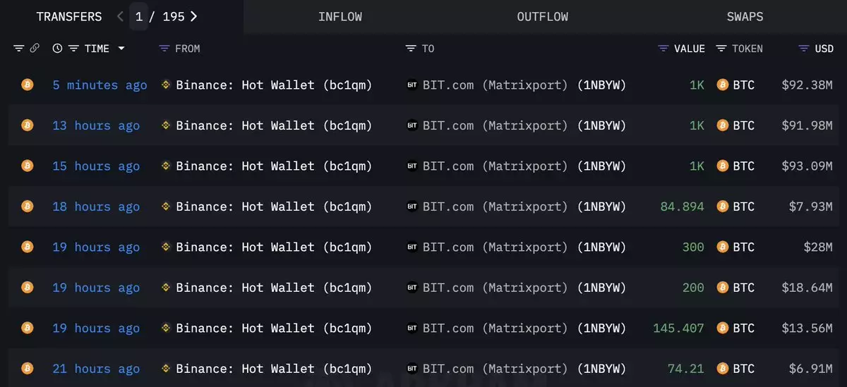 Matrixport has withdrawn 3,805 $BTC($352.5M) from #Binance