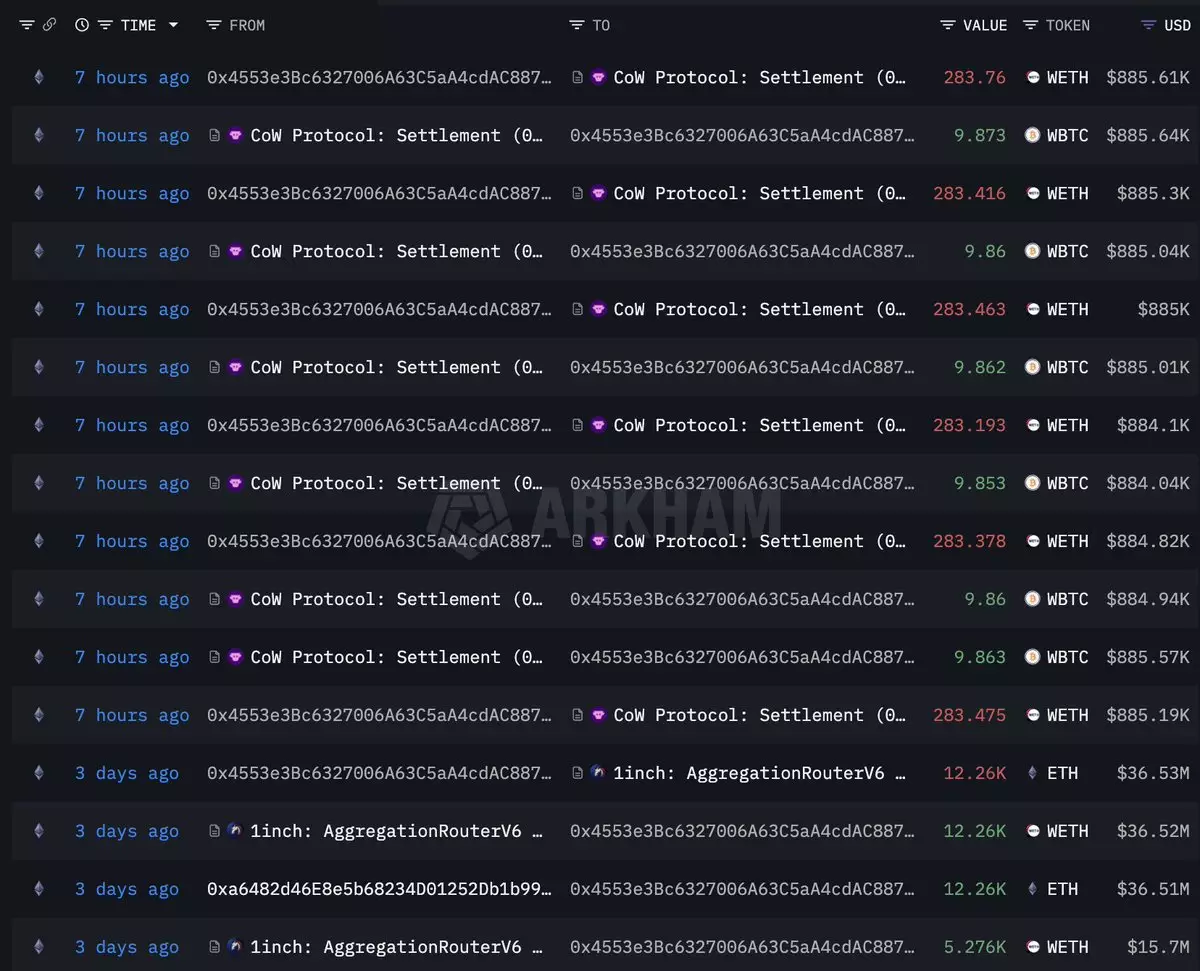 An #Ethereum OG (0x4553) is converting his $ETH holdings into $BTC. Between 2019 and 2023, he bought 21,000 $ETH($61.4M) at an average price of $2,922. Over the past 7 hours, he swapped 14,146 $ETH($44.3M) for 492 $WBTC, at a ratio of 0.03479. https://intel.arkm.com/explorer/address/0x4553e3Bc6327006A63C5aA4cdAC887f66b6A433E…