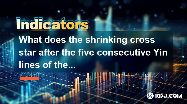 A shrinking cross star following five bearish weekly candles suggests potential trend reversal or consolidation in crypto markets.