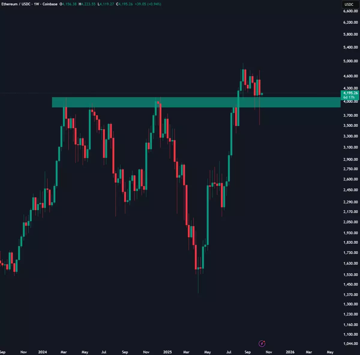 $ETH has reclaimed the $4,060 support level. Right now, Ethereum is having a V-shaped recovery, which is a good sign. The next level to reclaim is $4,250 and then bulls will be in control.