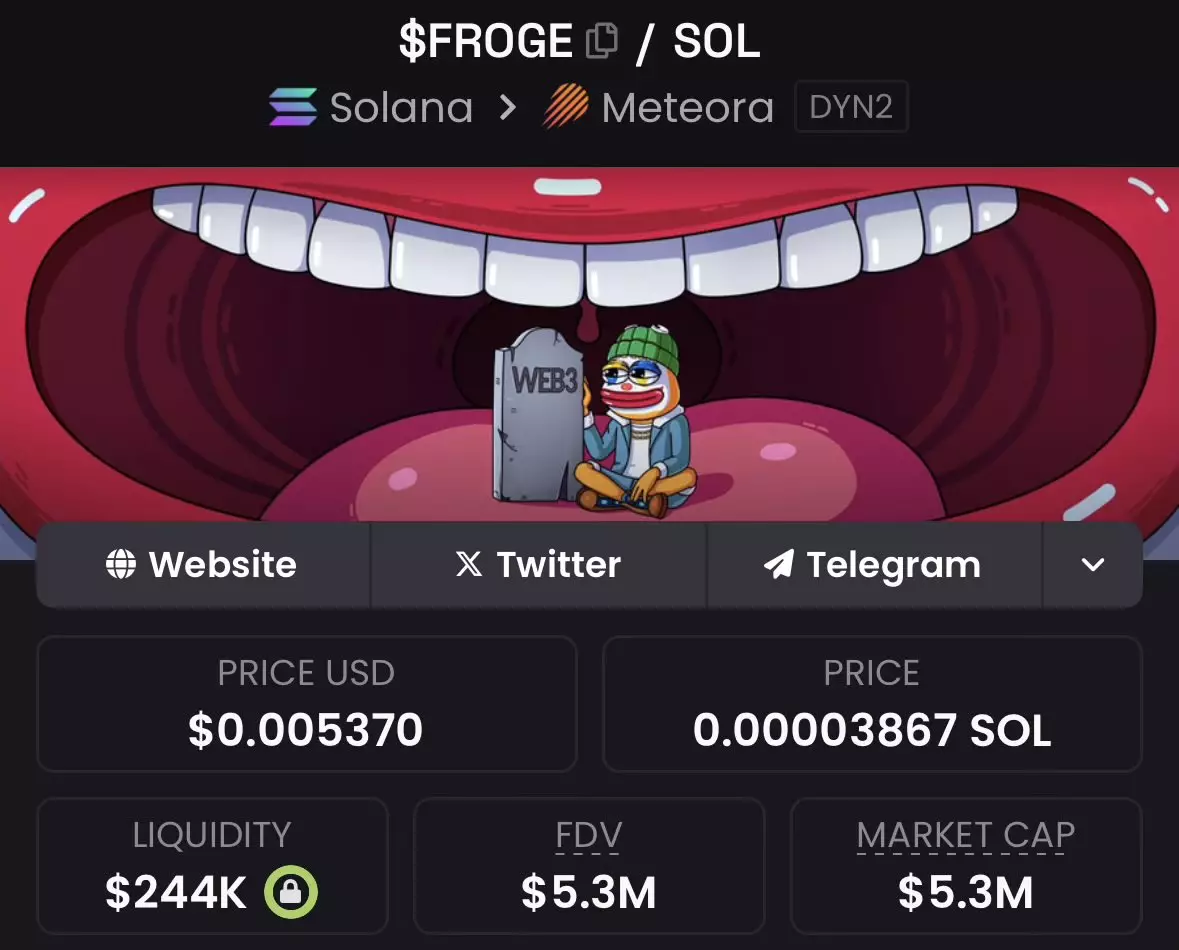 Just stumbled across this $FROGE think. Honestly, this is giving me some serious early $PEPE vibes. Did some DYOR, and seems like this is going to be a big one Narrative looking strong af, so I decided to put some 5k into it. This is deffo sending very very soon Don't miss