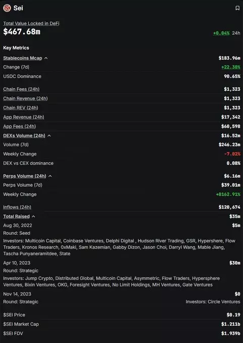 $SEI continues to show healthy network fundamentals. TVL sits at $467M with stablecoin market cap up 22% on the week, and over 90% of liquidity in USDC, a sign of real capital depth, not just rotation. App revenue, DEX, and perps volume remain steady even through broader market - Üstad Splinter