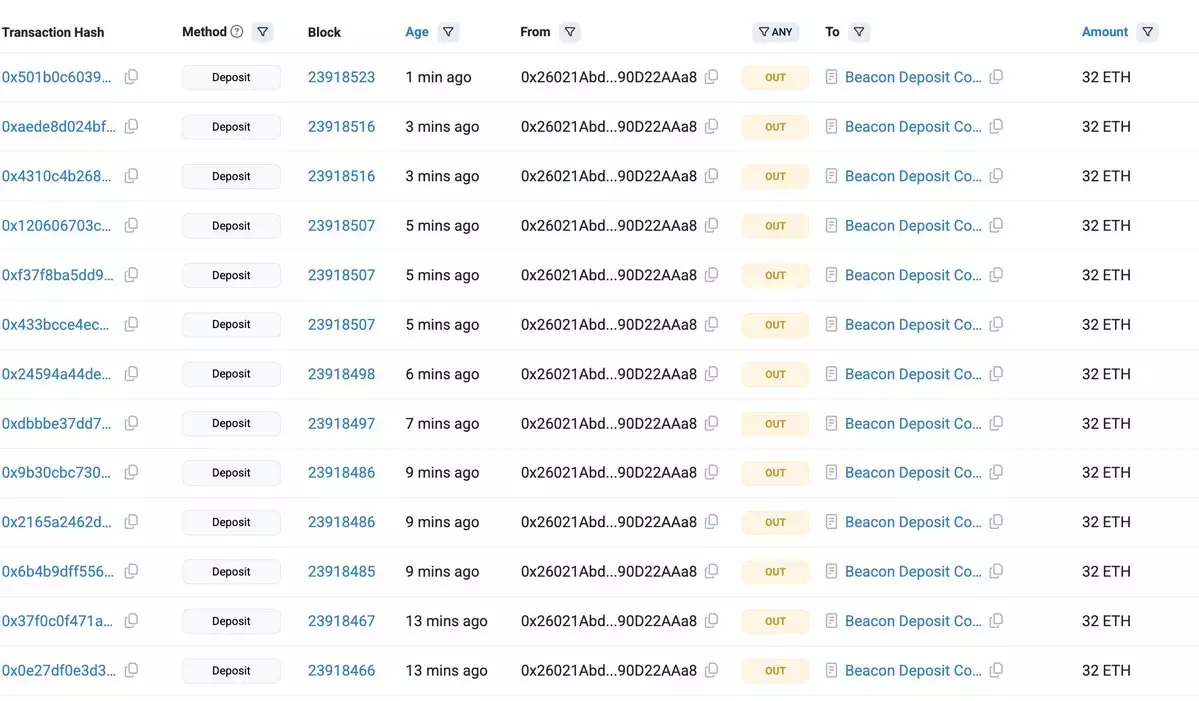 Ethereum ICO wallet (0x2dCA) with 40,000 $ETH($120M) woke up after 10+ years of dormancy — and instead of selling, he staked the $ETH. https://etherscan.io/address/0x26021abdd34df672fed798cf5a2e98190d22aaa8… An Ethereum ICO wallet (0x2dCA) with 40,000 $ETH($119.5M) just transferred 5 $ETH($15K) to a new wallet after 10+ years of dormancy. He invested only $12.4K in the ICO and received 40,000 $ETH — now worth $119.5M, a 9,639x return! https://etherscan.io/address/0x2dca0e449ab646dbdfd393a96662960bcab5ae1e…